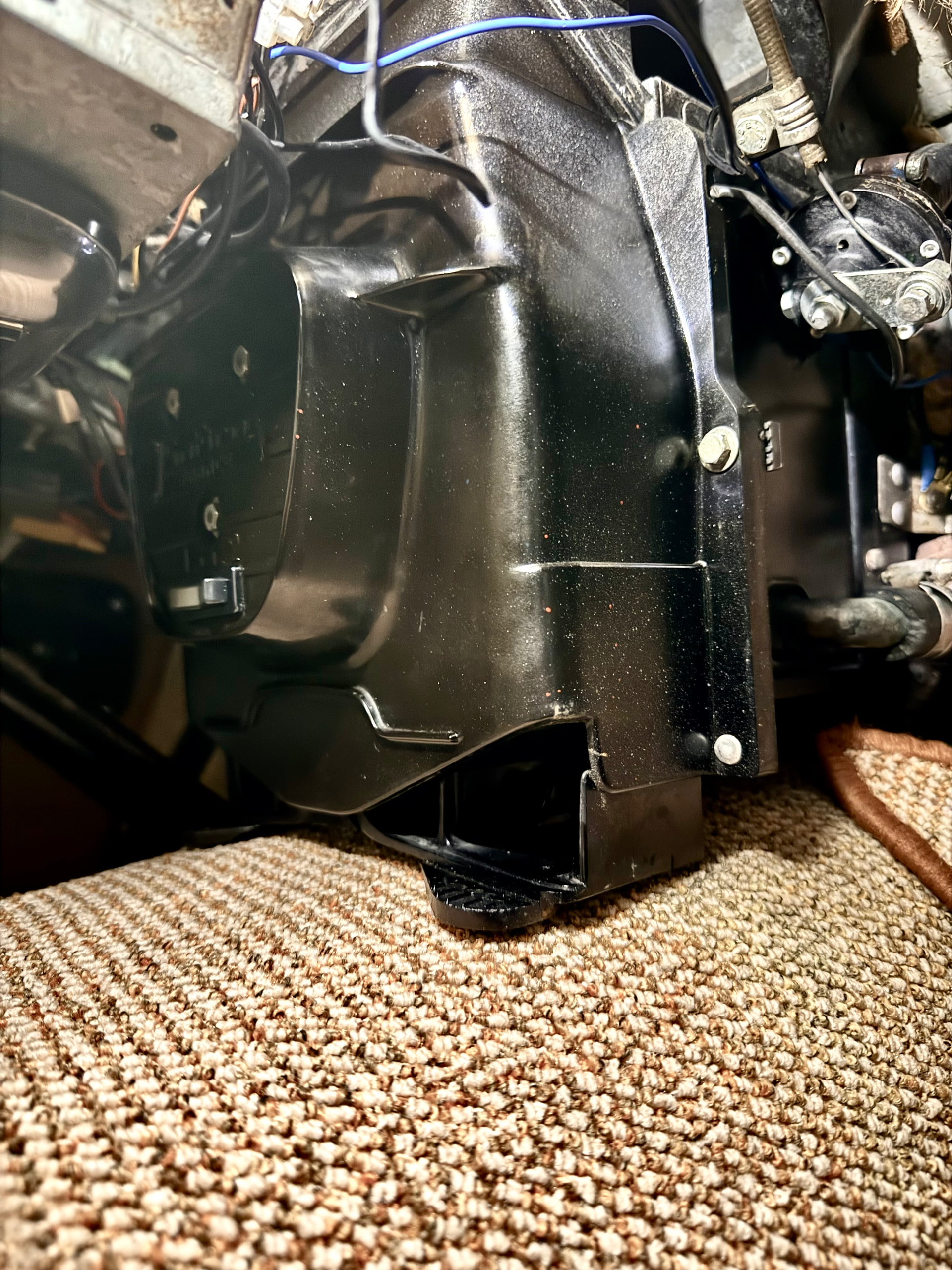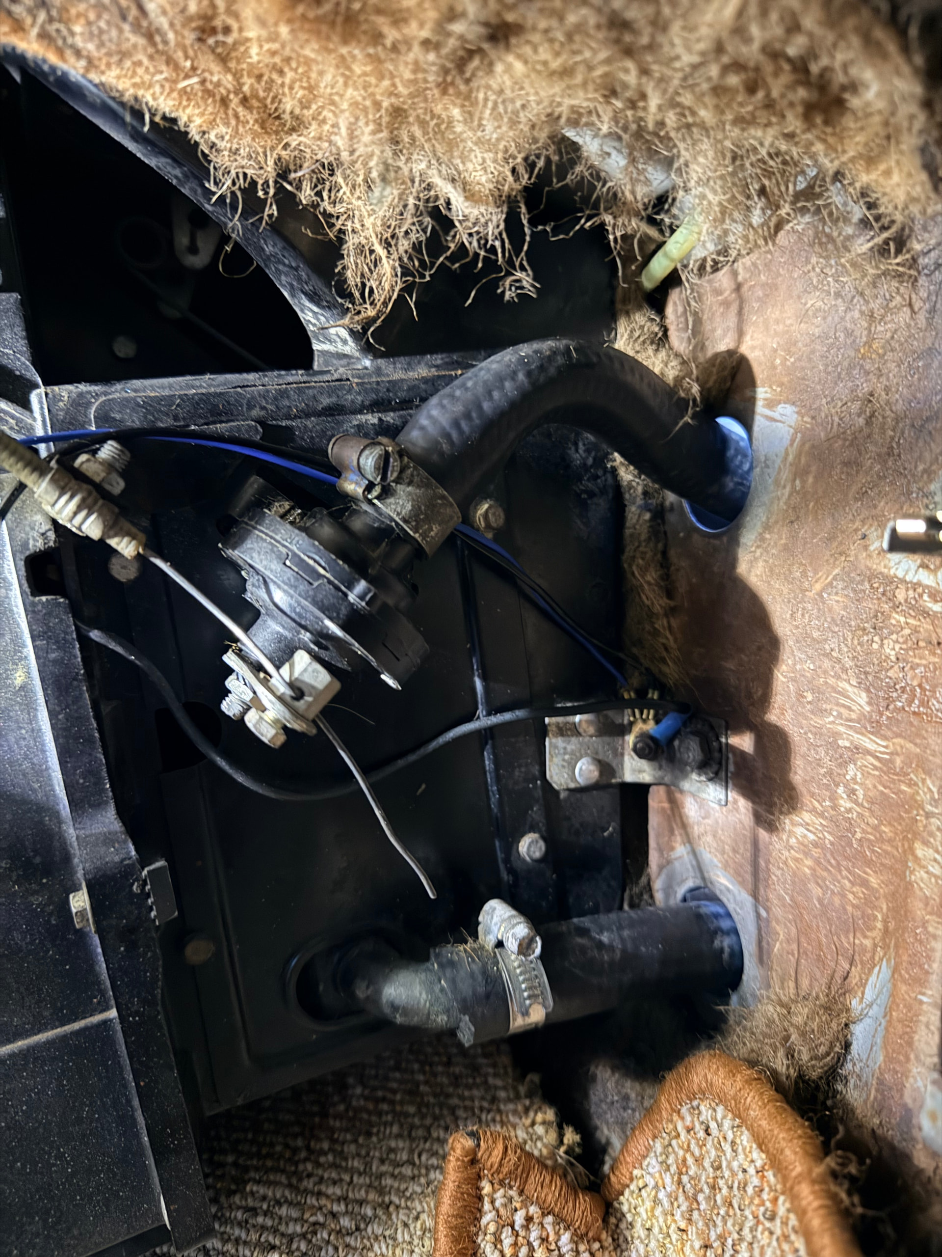 J’ai démonté le ventilateur à deux vitesses et revérifié les durites et le robinet… et par magie tout est rentré dans l’ordre en manipulant la tirette du chauffage plusieurs fois.