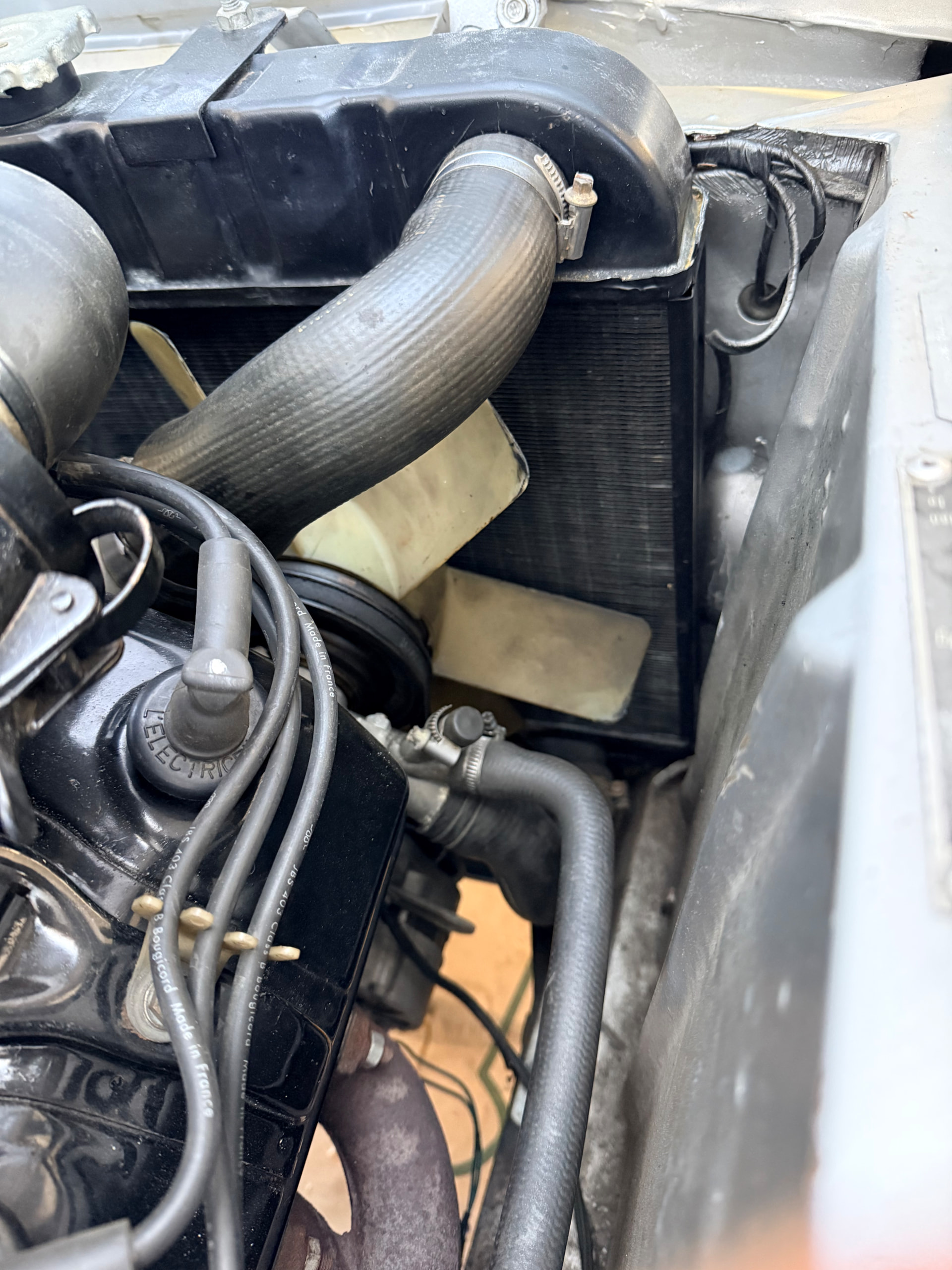 Je pense avoir fait une erreur dans le raccordement des durites: celle qui arrive sur le robinet de chauffage et celle qui ressort du bas du chauffage. Car le moteur chauffe, les durites du radiateur sont brûlantes. Mais ces deux durites restent froides et donc pas de chauffage ! Je suis vraiment nul de ne pas avoir pris de photos avant démontage !!